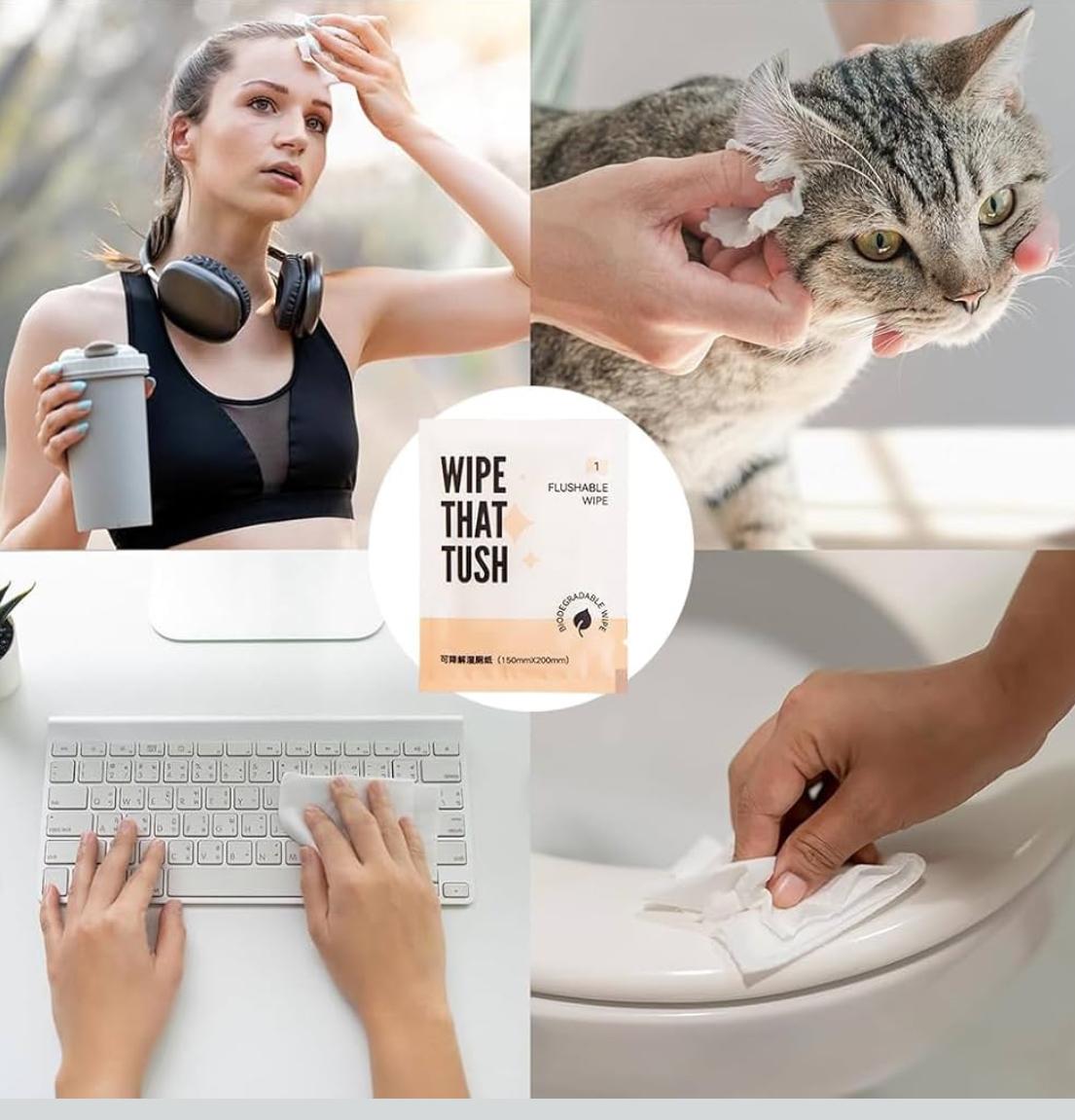 Individually Wrapped, On-The-Go Flushable Wet Wipes- Hypoallergenic & Unscented for Travel Bathroom Toilet Use
